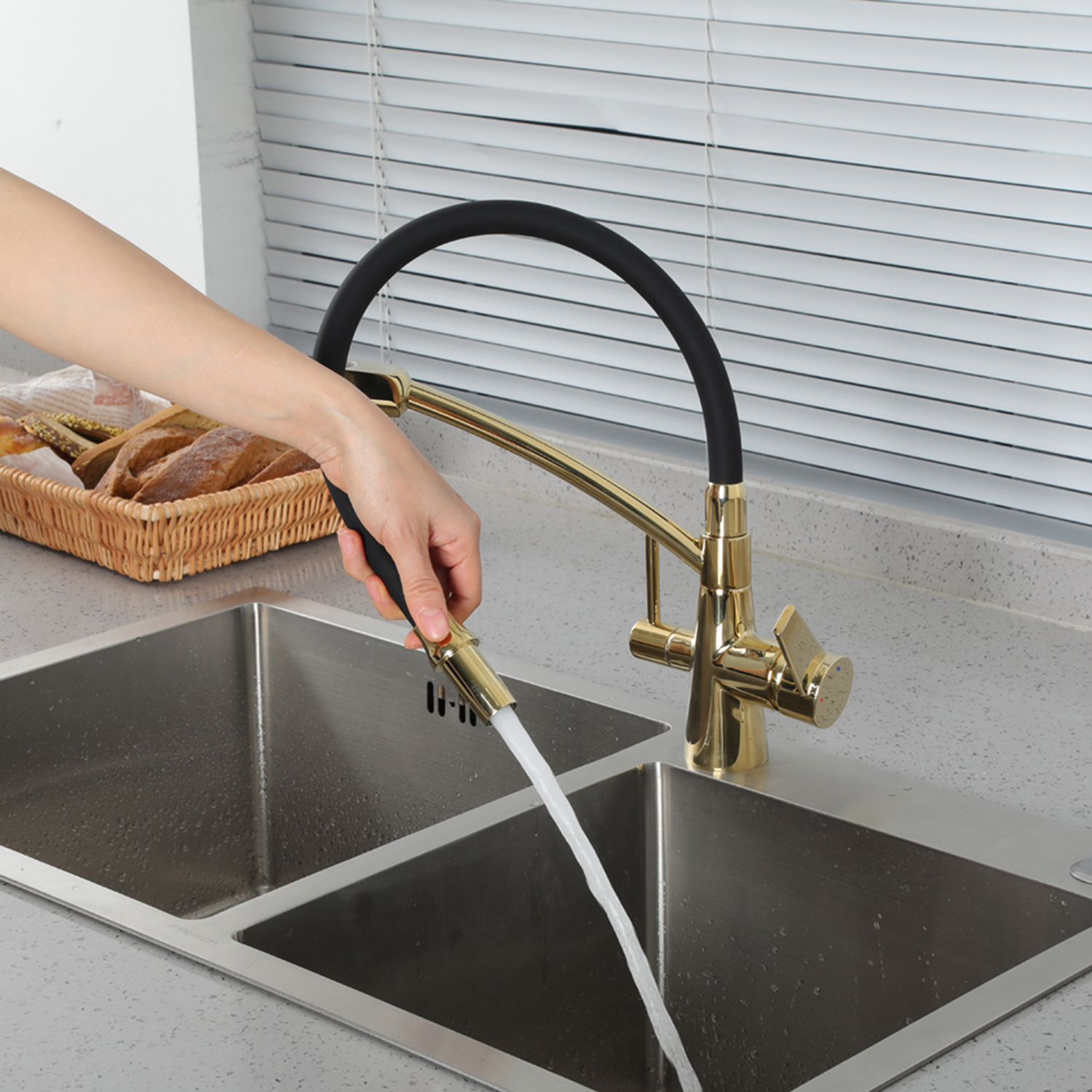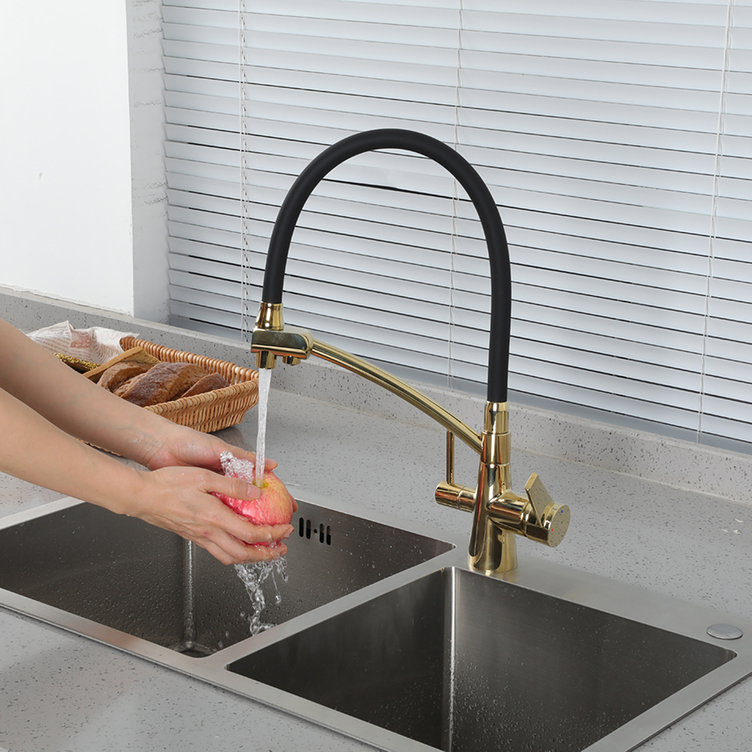 Смеситель для кухни со встроенным фильтром (краном) под питьевую воду Gappo G4398-13