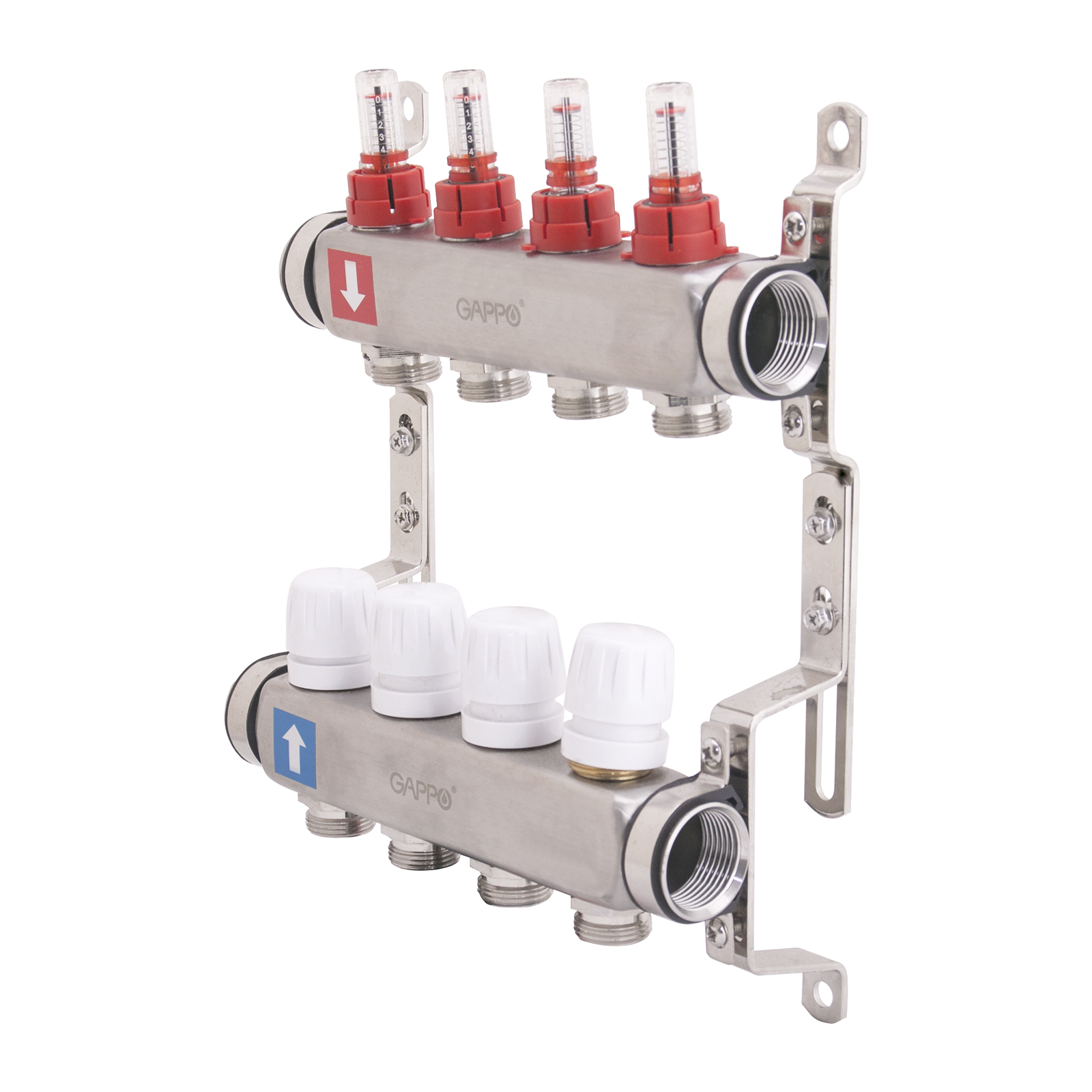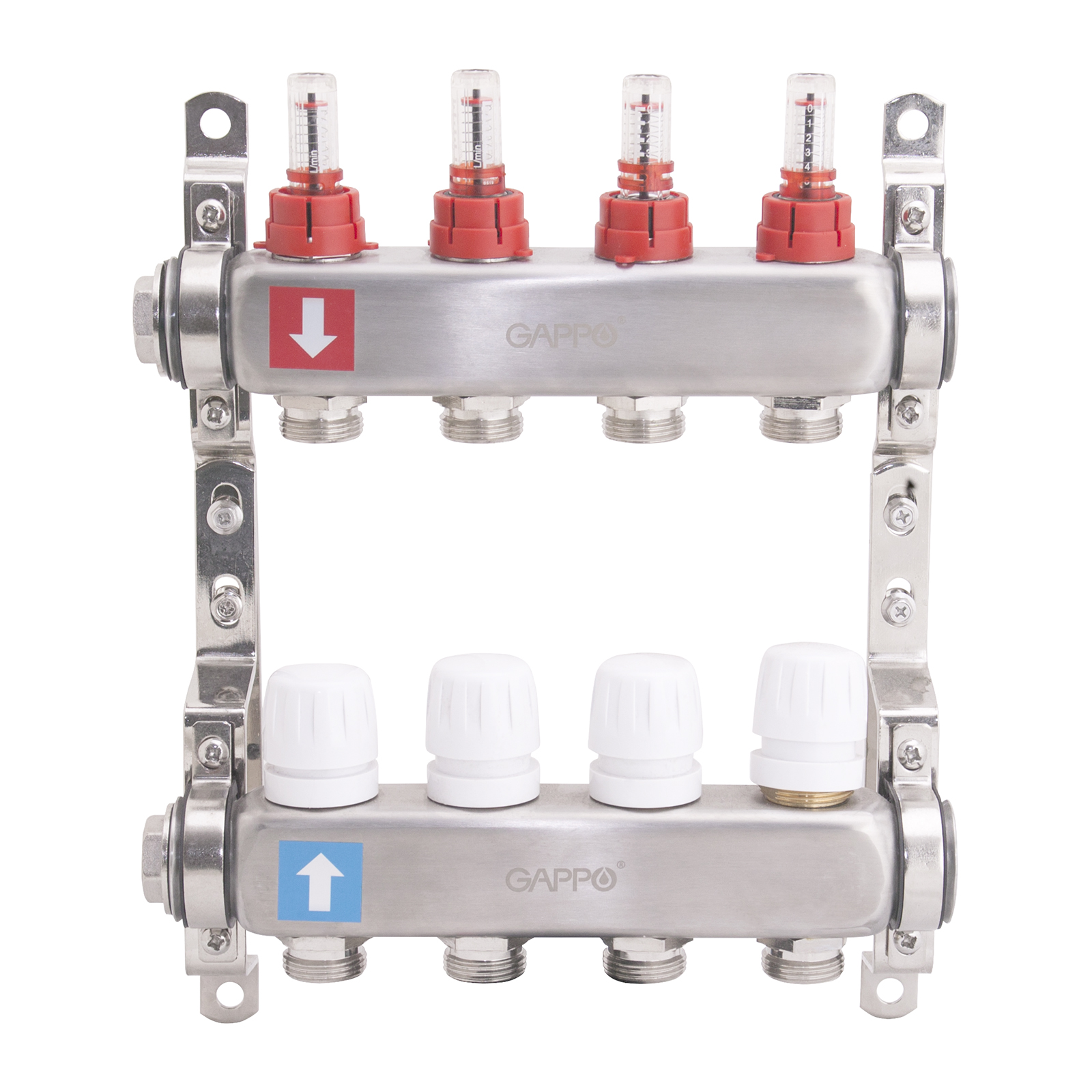 Коллектор регулируемый с расходомерами Gappo G424.4 4-вых. x1"x3/4"