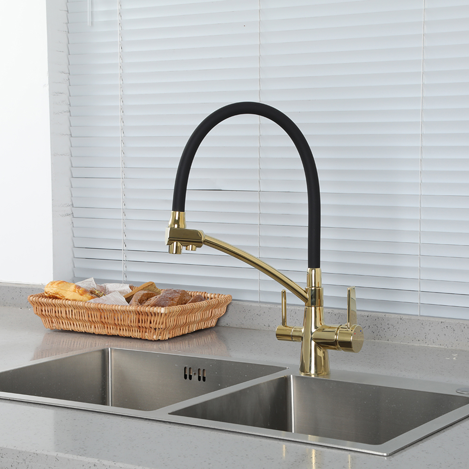 Смеситель для кухни со встроенным фильтром (краном) под питьевую воду Gappo G4398-13